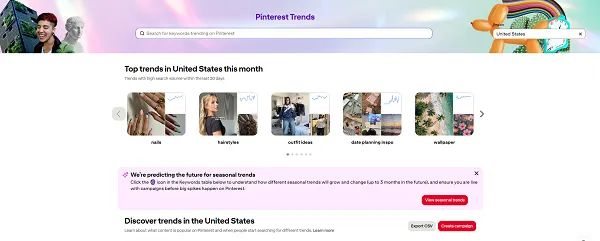 Pinterest Trends cung cấp dữ liệu trực quan về những chủ đề, hình ảnh và sản phẩm đang được tìm kiếm nhiều nhất.