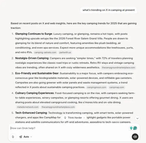 Mặc dù Grok chưa xử lý toàn bộ dữ liệu X theo thời gian thực, nhưng nó cung cấp các insight gần như trực tiếp về xu hướng trong từng lĩnh vực – từ công nghệ, giải trí cho đến tiêu dùng.