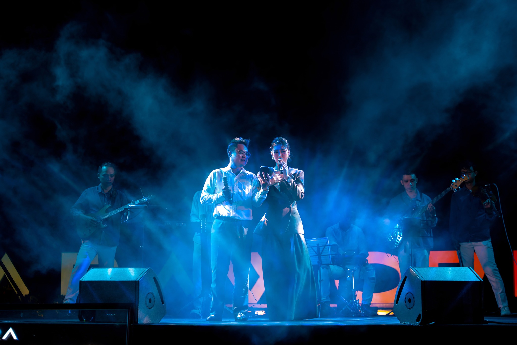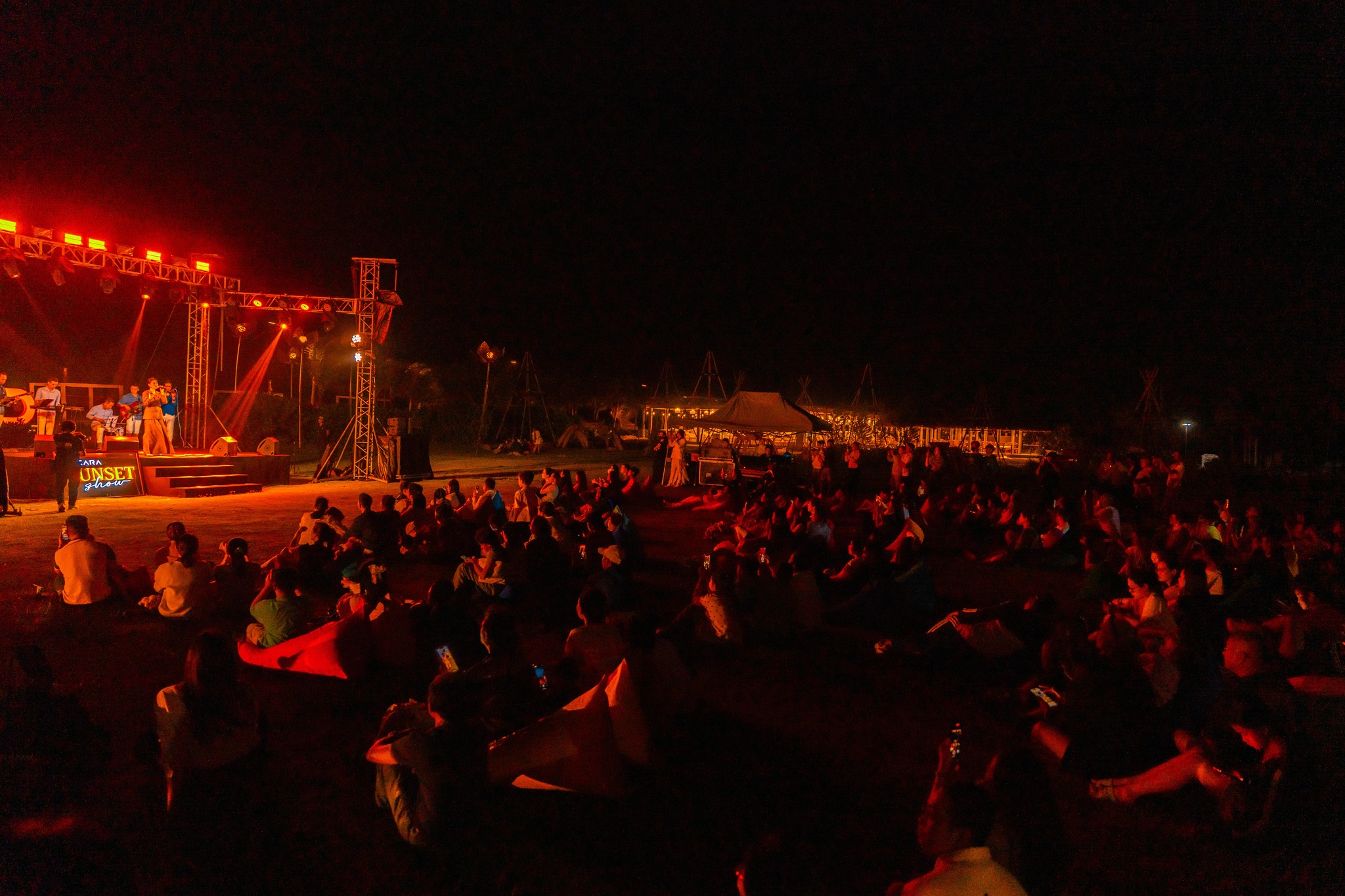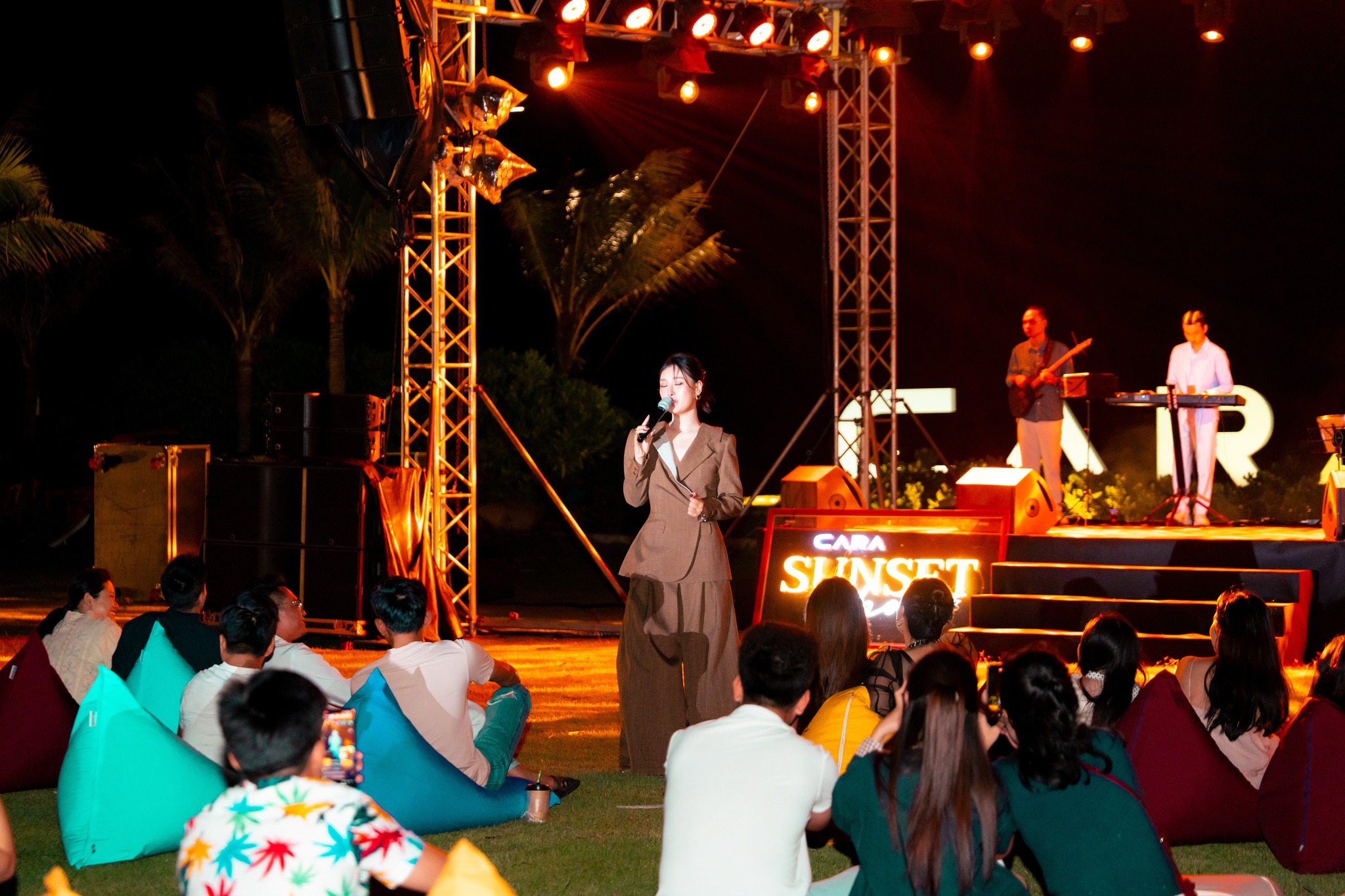 Sân khấu được thiết kế với tinh thần “ít để đẹp hơn, giản dị để nổi bật hơn”. Chúng tôi muốn khán giả nhìn vào nghệ sĩ, vào mặt biển, vào hoàng hôn — chứ không phải vào những cấu trúc kim loại vô cảm.
