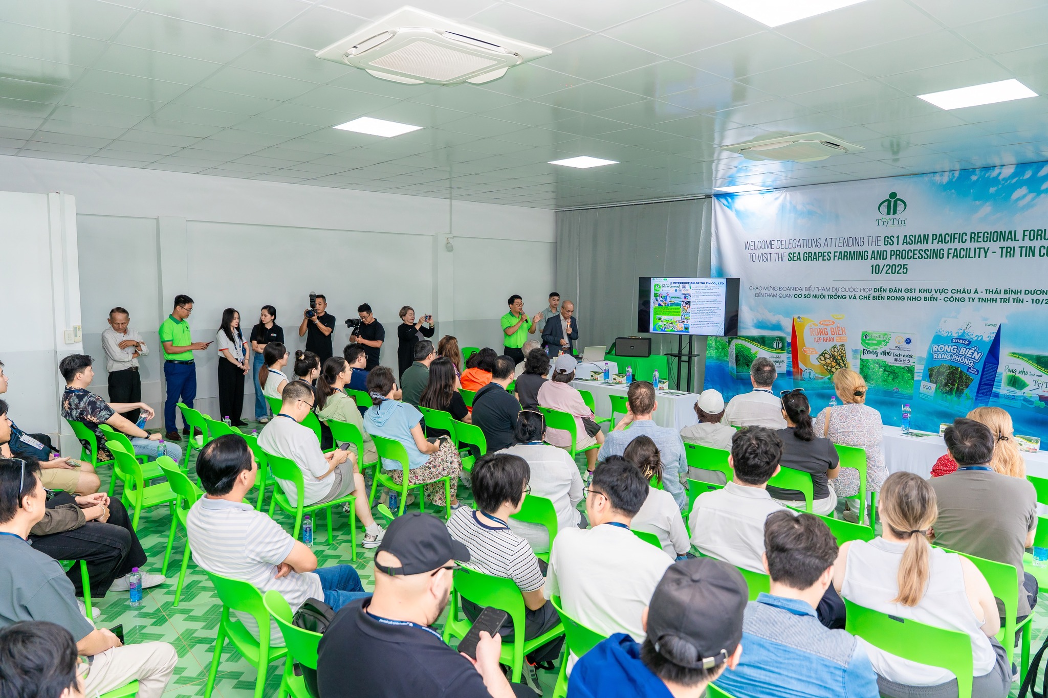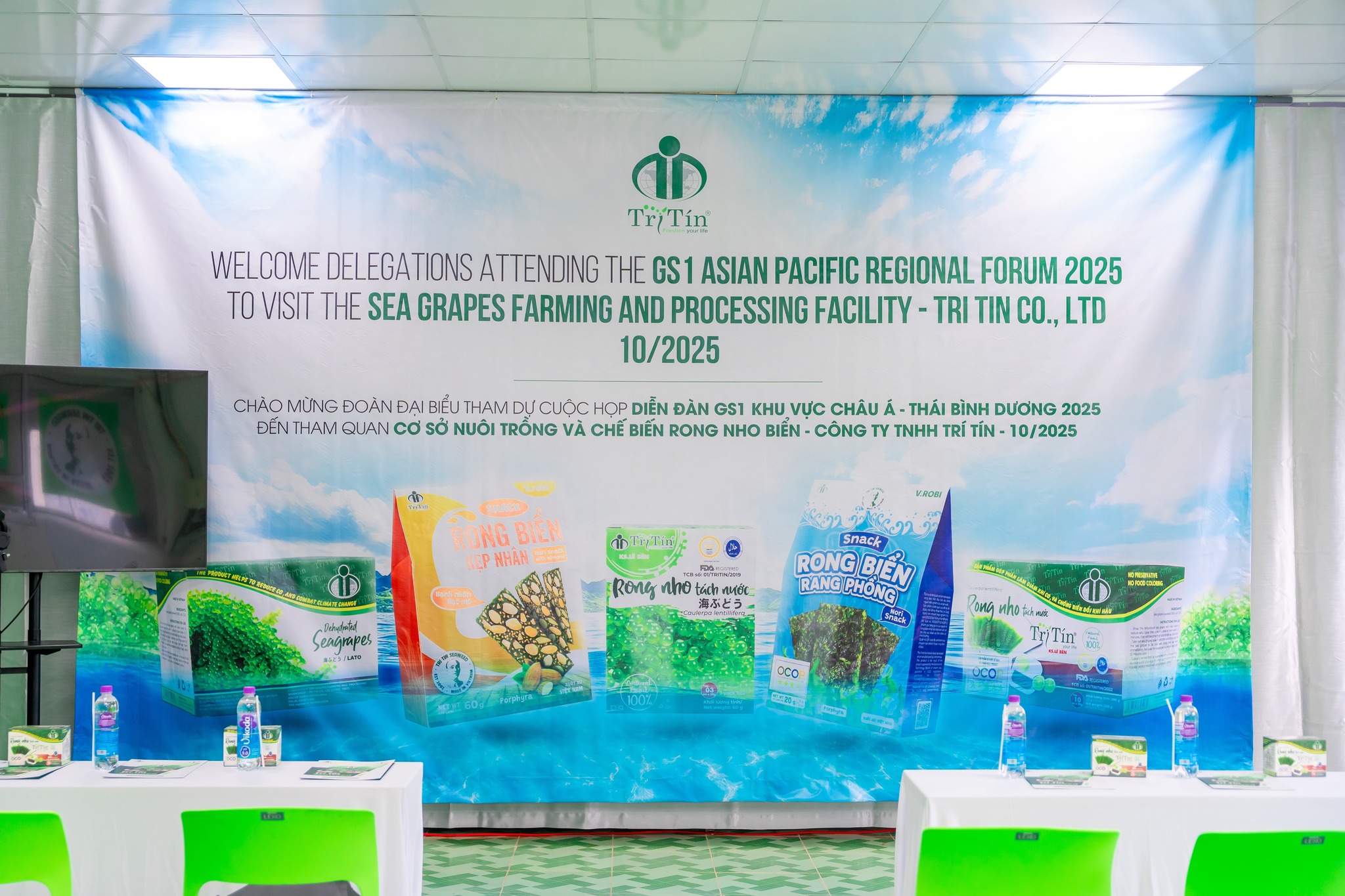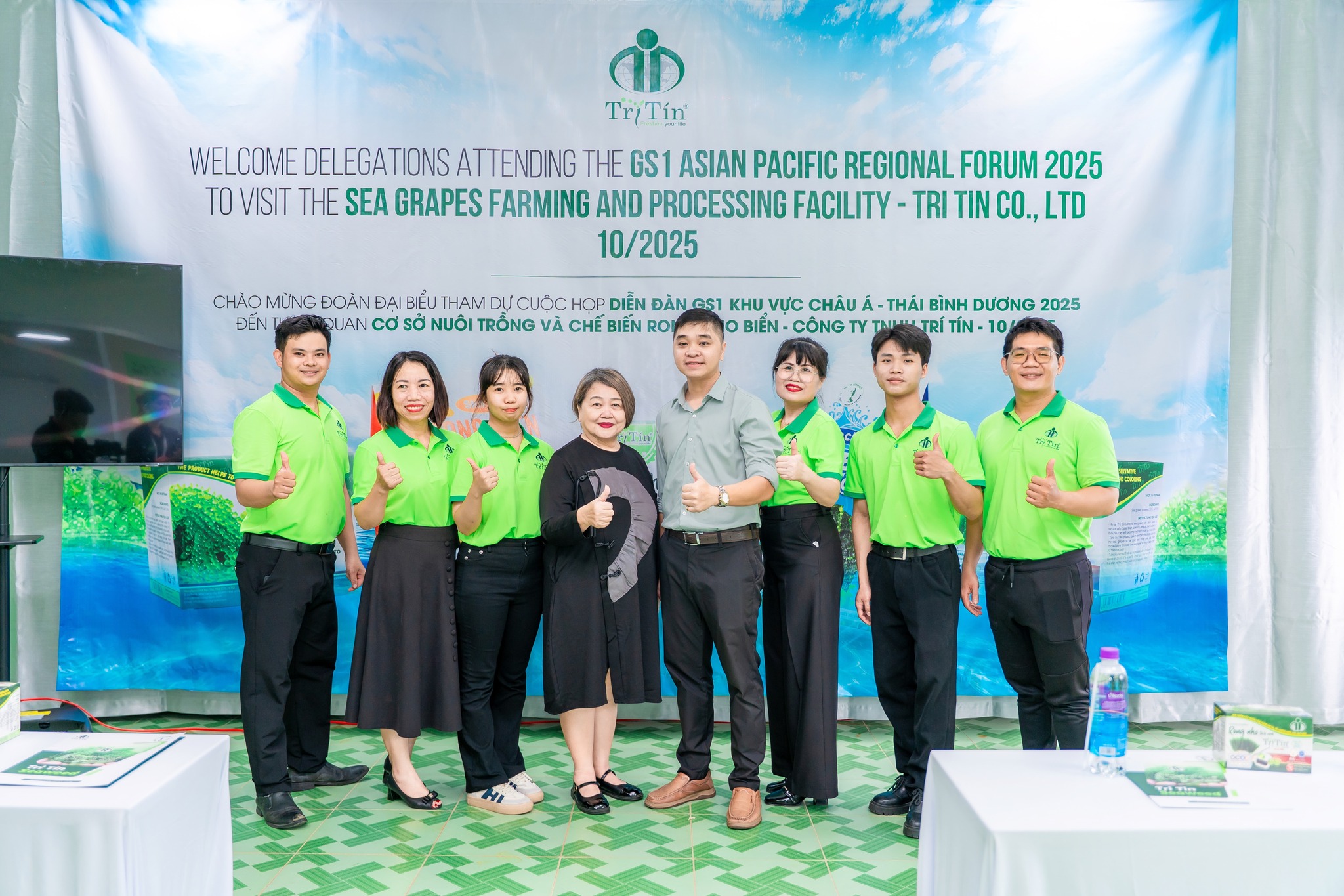 Tháng 10/2025 trở thành một thời điểm có ý nghĩa đặc biệt đối với thương hiệu Rong Nho Trí Tín, khi doanh nghiệp đón tiếp đoàn đại biểu quốc tế trong khuôn khổ GS1 Asia Pacific Regional Forum 2025. Đây là diễn đàn uy tín của khu vực Châu Á – Thái Bình Dương, nơi quy tụ các tổ chức tiêu chuẩn, các chuyên gia và các doanh nghiệp hàng đầu trong lĩnh vực truy xuất nguồn gốc, an toàn thực phẩm và tiêu chuẩn chất lượng. Việc Trí Tín được lựa chọn làm điểm tham quan thực tế là sự ghi nhận cho nỗ lực không ngừng trong việc xây dựng mô hình nuôi trồng – chế biến rong nho biển theo hướng hiện đại, minh bạch và bền vững.