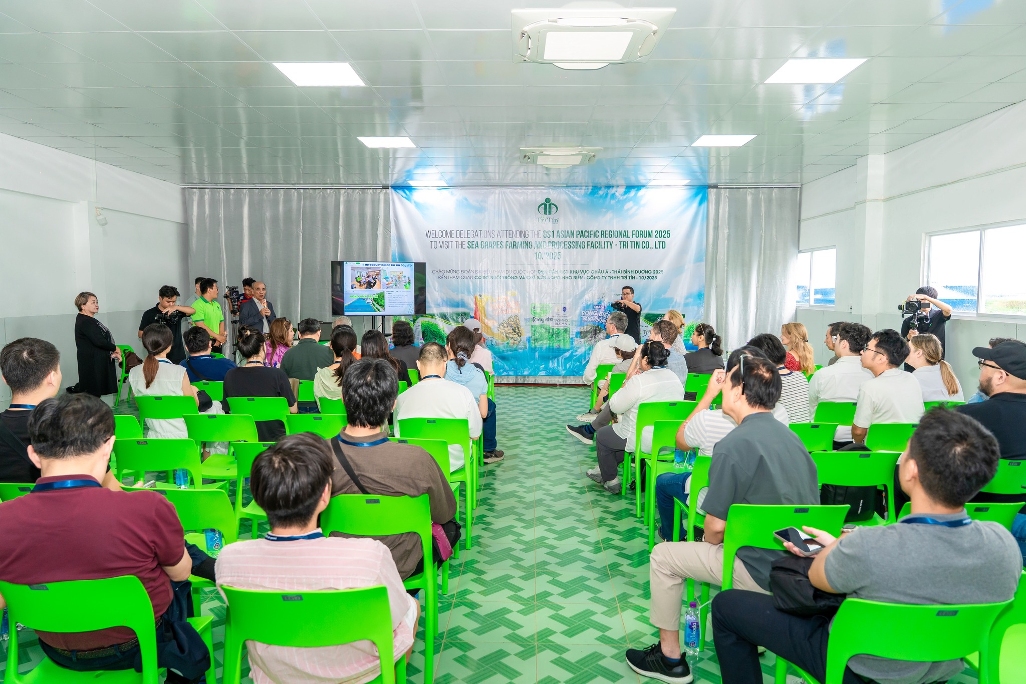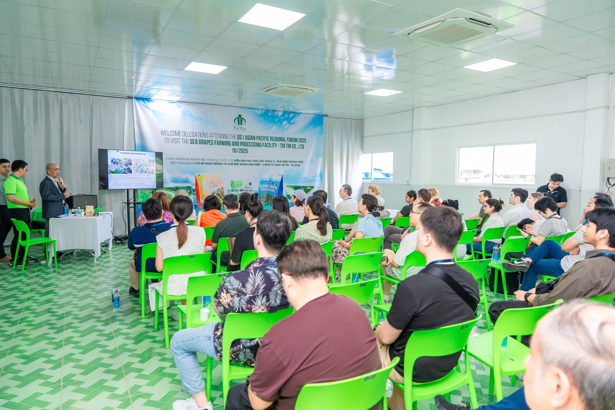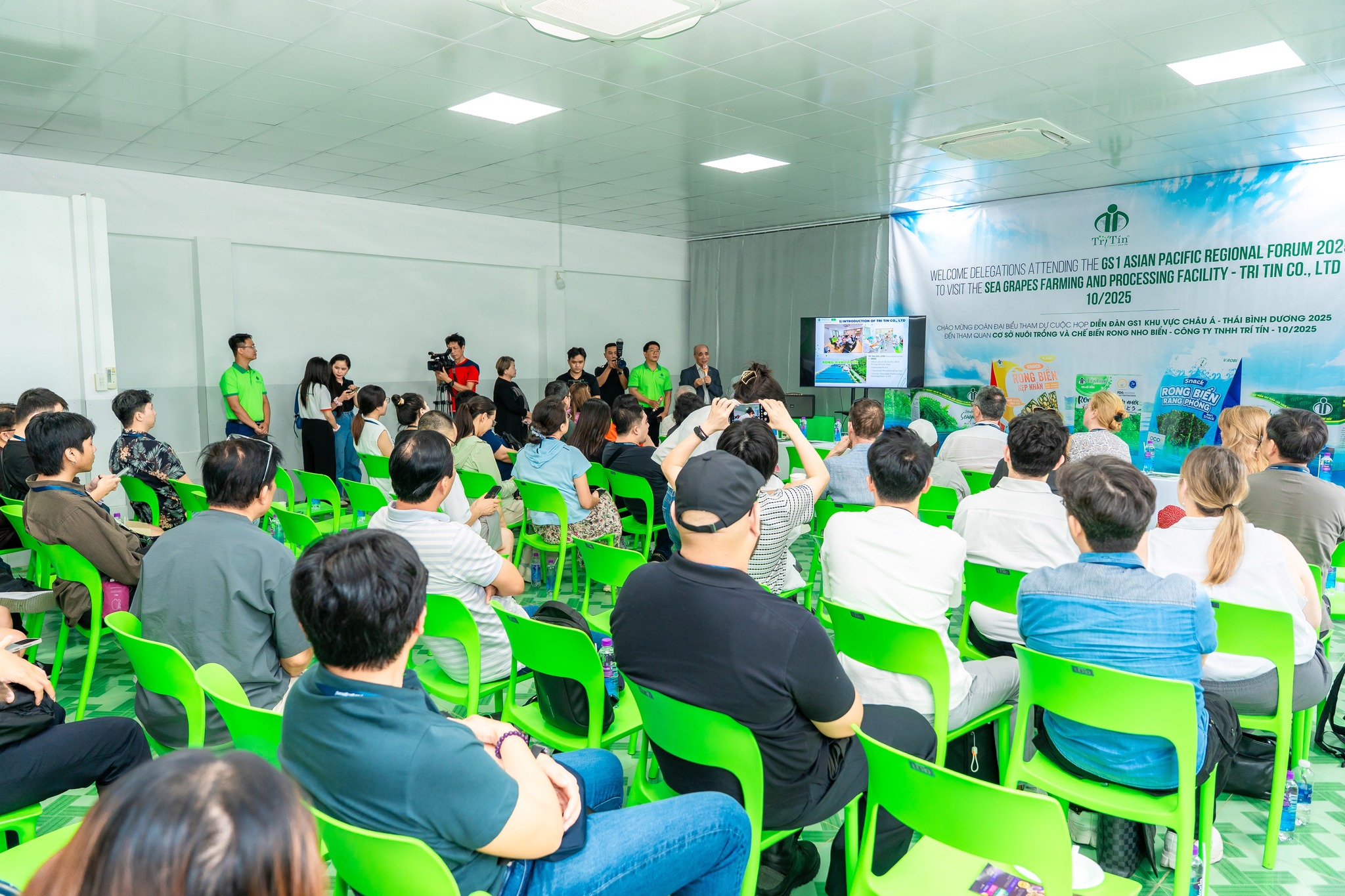 Tháng 10/2025 trở thành một thời điểm có ý nghĩa đặc biệt đối với thương hiệu Rong Nho Trí Tín, khi doanh nghiệp đón tiếp đoàn đại biểu quốc tế trong khuôn khổ GS1 Asia Pacific Regional Forum 2025. Đây là diễn đàn uy tín của khu vực Châu Á – Thái Bình Dương, nơi quy tụ các tổ chức tiêu chuẩn, các chuyên gia và các doanh nghiệp hàng đầu trong lĩnh vực truy xuất nguồn gốc, an toàn thực phẩm và tiêu chuẩn chất lượng. Việc Trí Tín được lựa chọn làm điểm tham quan thực tế là sự ghi nhận cho nỗ lực không ngừng trong việc xây dựng mô hình nuôi trồng – chế biến rong nho biển theo hướng hiện đại, minh bạch và bền vững.