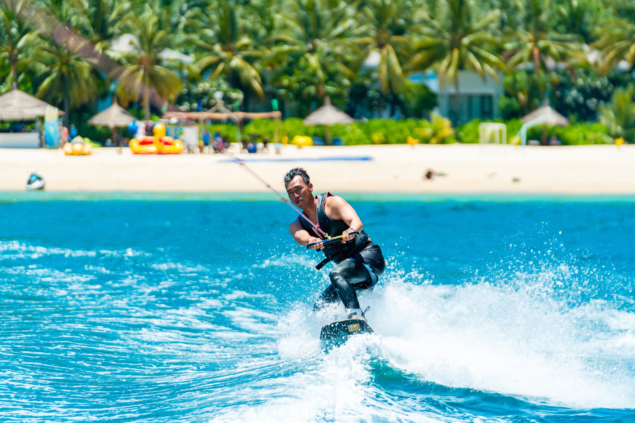 Water World không chỉ là trải nghiệm cá nhân, mà là hành trình gắn kết: từ cú flyboard mạo hiểm, khoảnh khắc lặn sâu ngắm đại dương, đến tiệc champagne trên du thuyền dưới hoàng hôn rực rỡ – nơi biển cả, âm nhạc và ánh sáng hòa làm một.