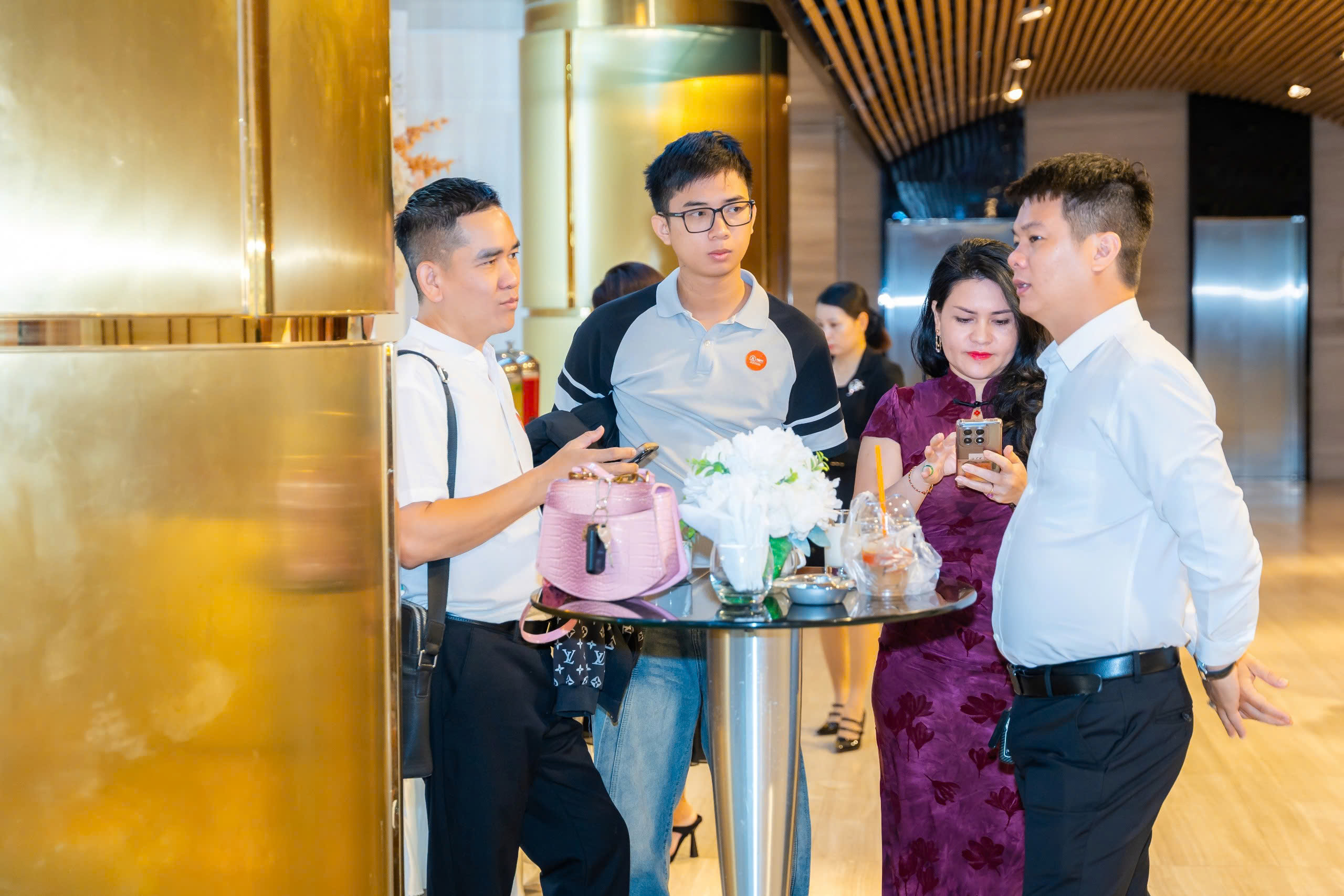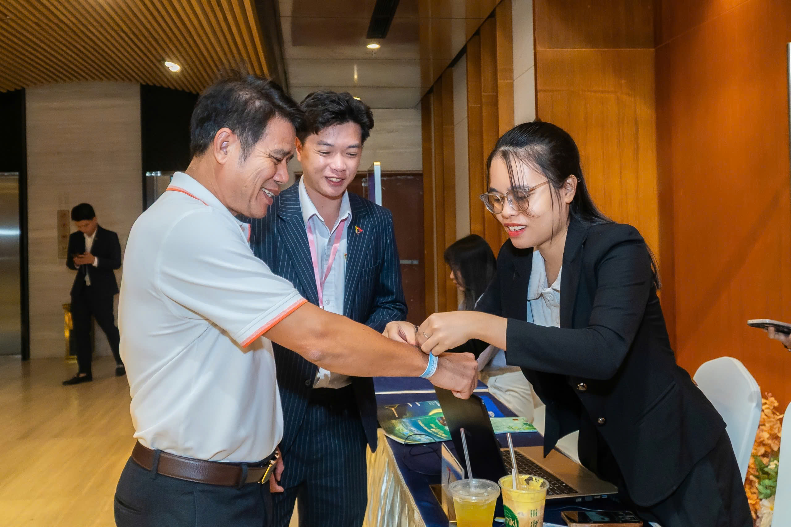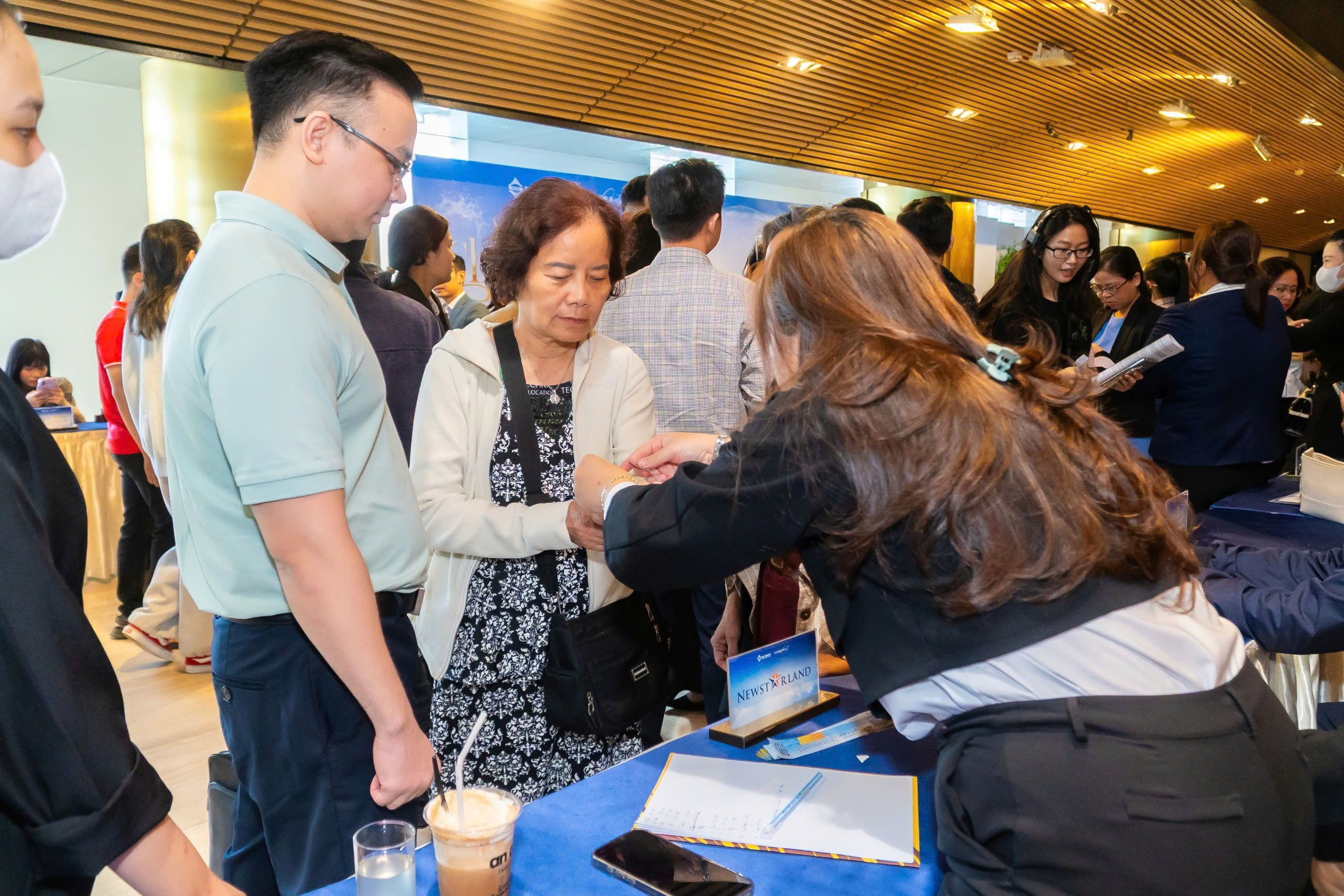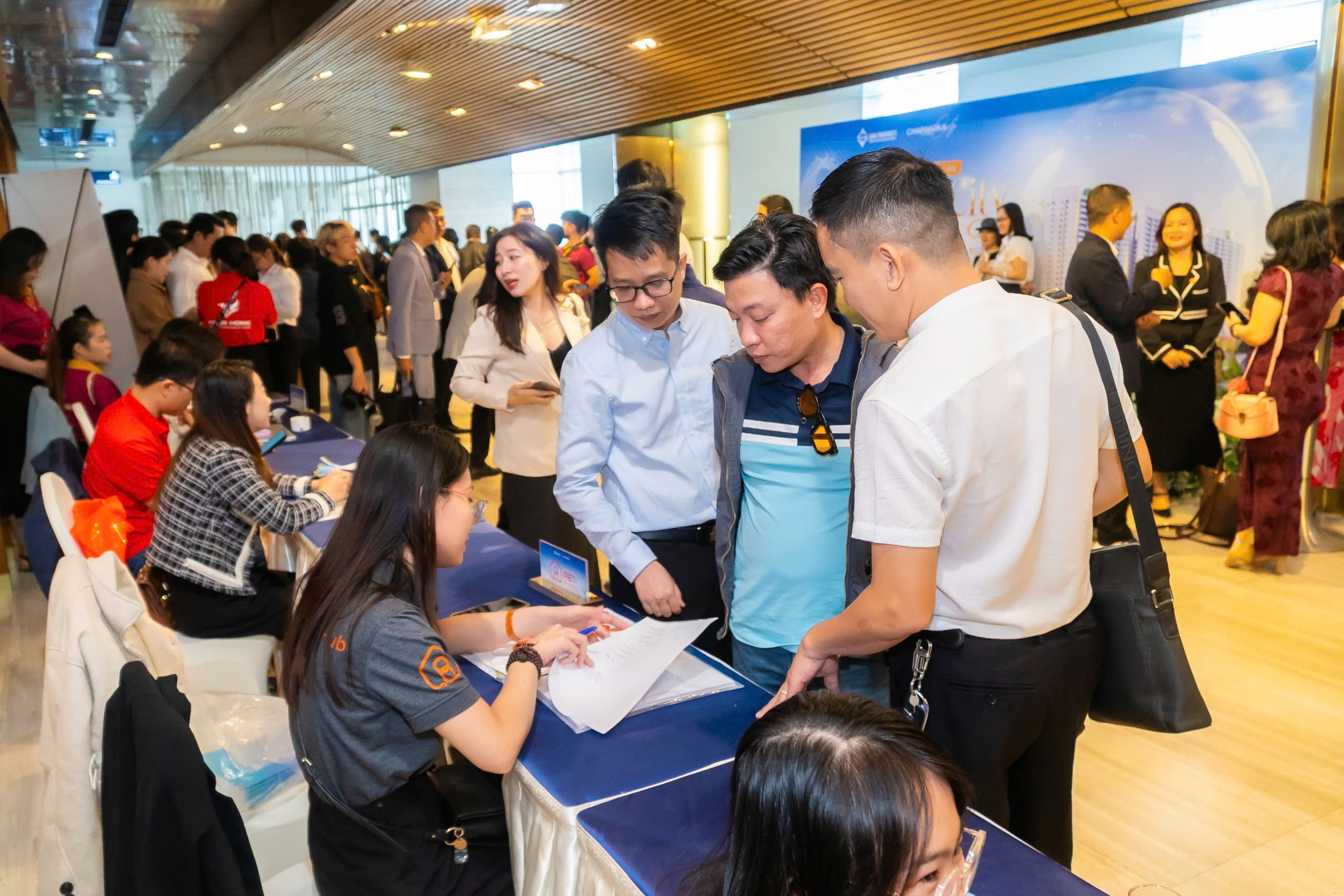 Một chương trình cao cấp cần sự “đúng tone” ngay khi khách bước vào: khu vực check-in được bố trí hợp lý để tạo trải nghiệm đón tiếp tốt; backdrop, standee, bảng chỉ dẫn đặt đúng điểm nhìn; sân khấu cân đối theo góc nhìn và truyền thông. Tất cả những điều này tạo nên một cảm giác xuyên suốt: dự án được giới thiệu bằng sự chỉn chu.