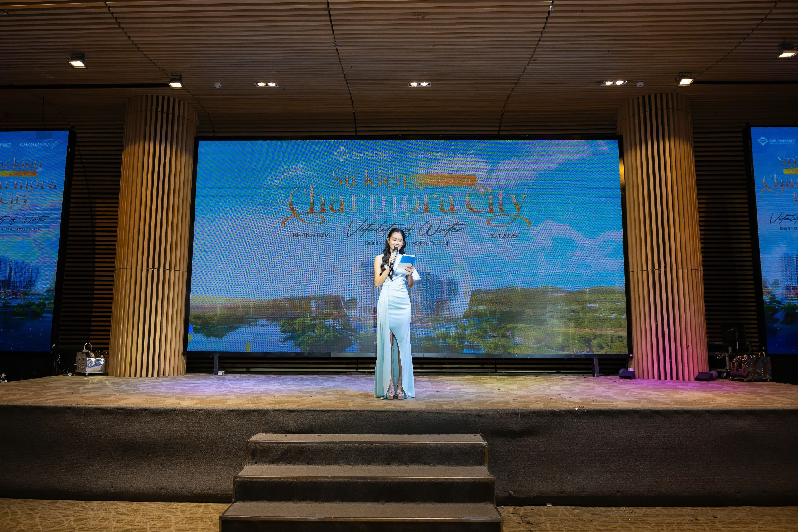 Trong một chủ đề đặc biệt như “Vitality of Water”, visual không được phép rối hoặc nặng hiệu ứng. Điều quan trọng là cảm giác: sự mềm mại của dòng chảy, sự tinh khiết của nước, sự hiện đại của đô thị, và sự bền vững của một hệ sinh thái sống. Từ intro, key moment, cue chuyển cảnh đến những phân đoạn trọng tâm như video giới thiệu dự án, thuyết trình và lucky draw — visual được thiết kế đồng bộ nhằm tạo một tổng thể sang trọng, sáng rõ, dễ tiếp nhận thông tin mà vẫn giữ sự tinh tế.