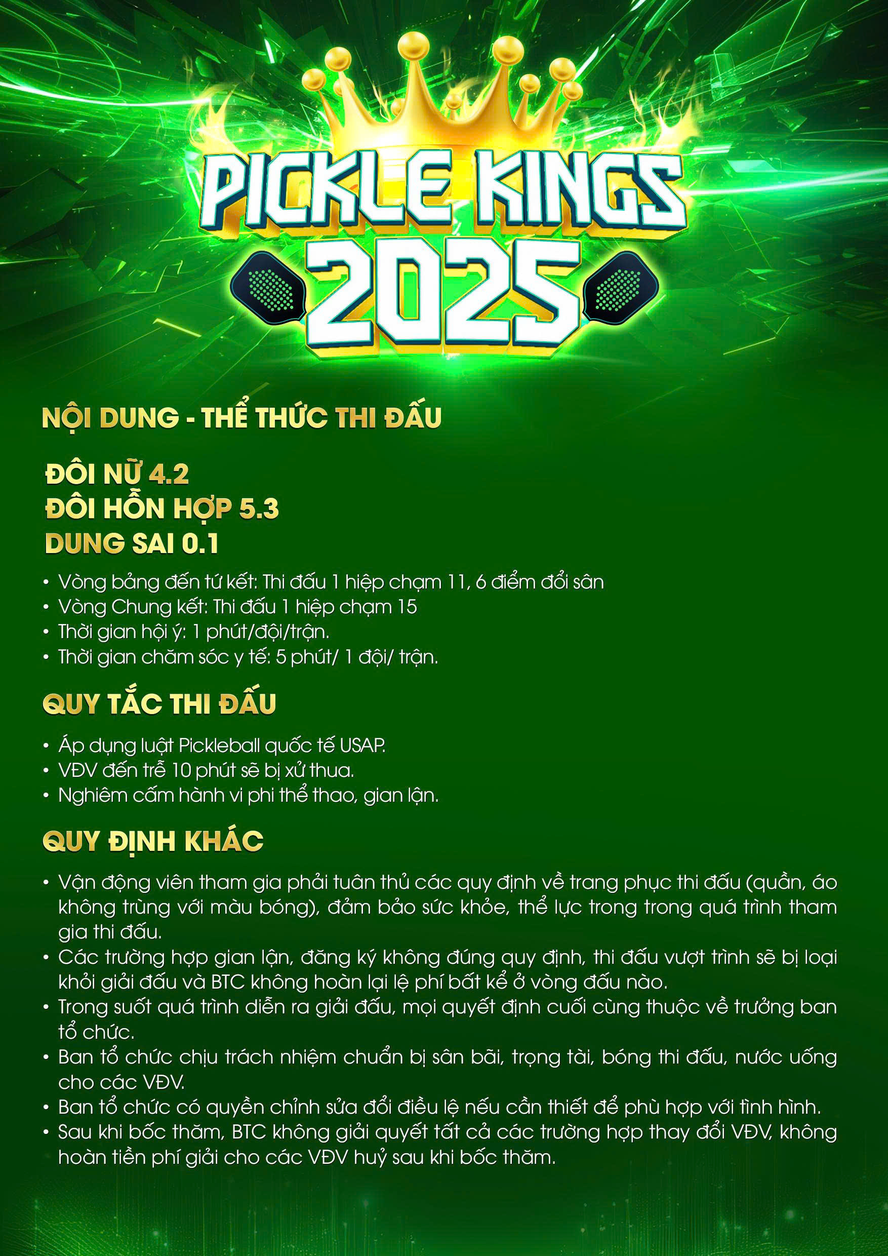 Thể lệ thi đấu, được thiết kế rõ ràng, dễ tiếp cận cho vận động viên và người theo dõi.