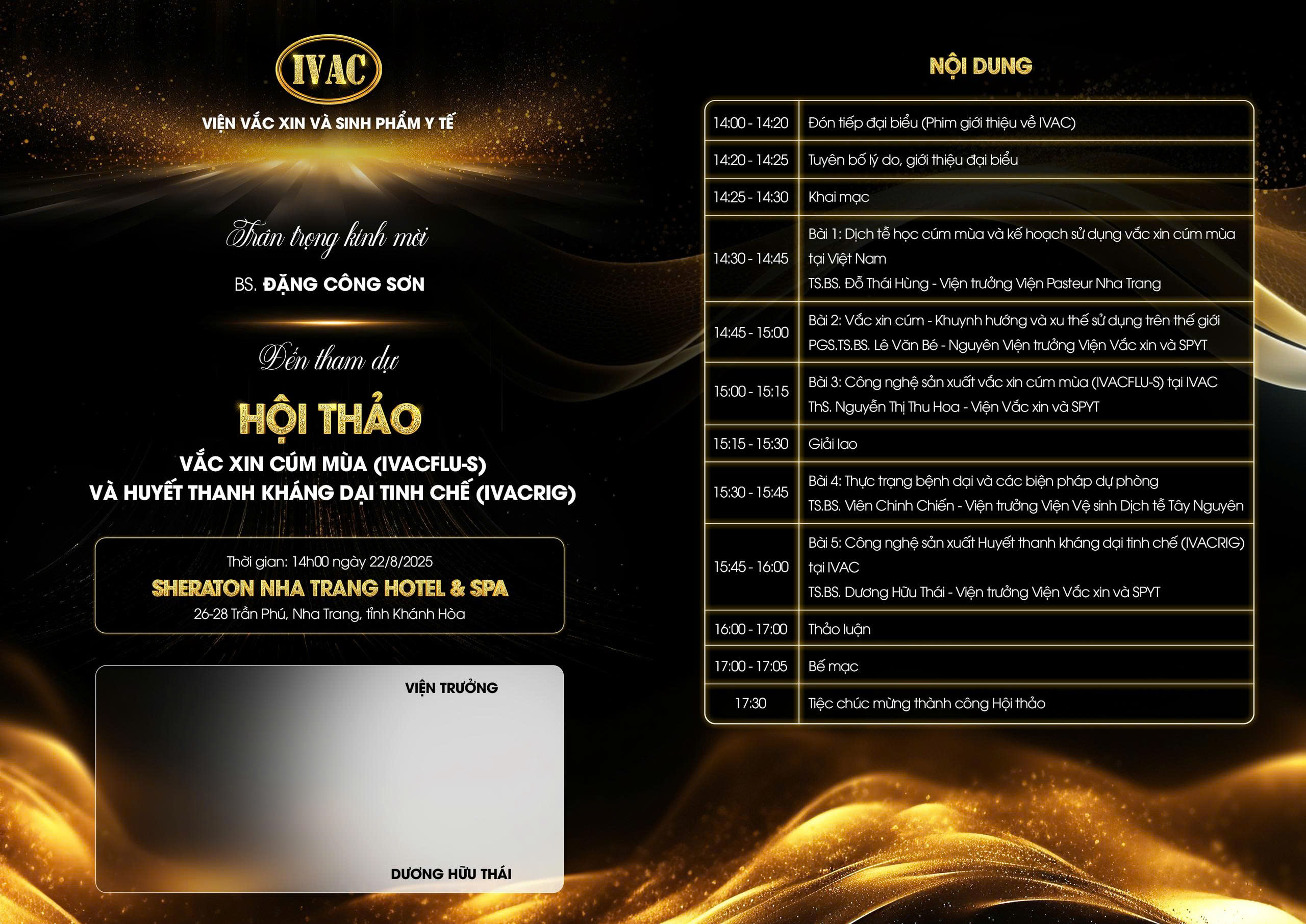 Vừa qua, Viện Vắc xin và Sinh phẩm Y tế (IVAC) đã long trọng tổ chức Hội thảo Vắc xin cúm mùa (IVACFLU-S) và Huyết thanh kháng dại tinh chế (IVACRIG) tại Nha Trang, với sự góp mặt của hàng trăm đại biểu đến từ các cơ quan y tế, viện nghiên cứu, bệnh viện và đối tác trên cả nước.