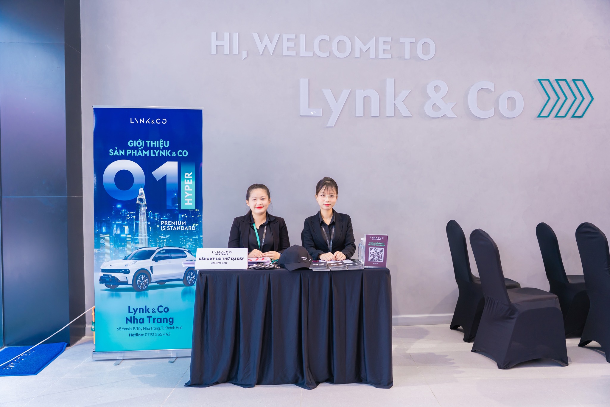Global Media đảm nhận thiết kế, in ấn và thi công toàn bộ hệ thống standee và backdrop cho sự kiện ra mắt Lynk & Co 01 Hyper tại Nha Trang, đảm bảo tính thẩm mỹ, đồng bộ và chuẩn nhận diện thương hiệu toàn cầu của Lynk & Co.
