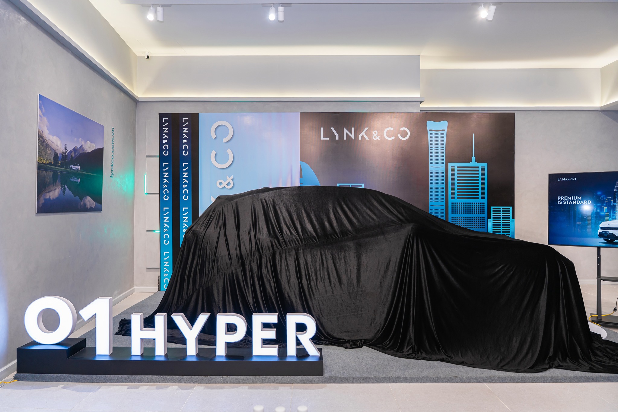 Tổng thể hai hạng mục standee và backdrop tạo nên một không gian thị giác đồng bộ – hiện đại – sang trọng, góp phần khắc họa rõ nét tinh thần “Premium is Standard” của Lynk & Co.