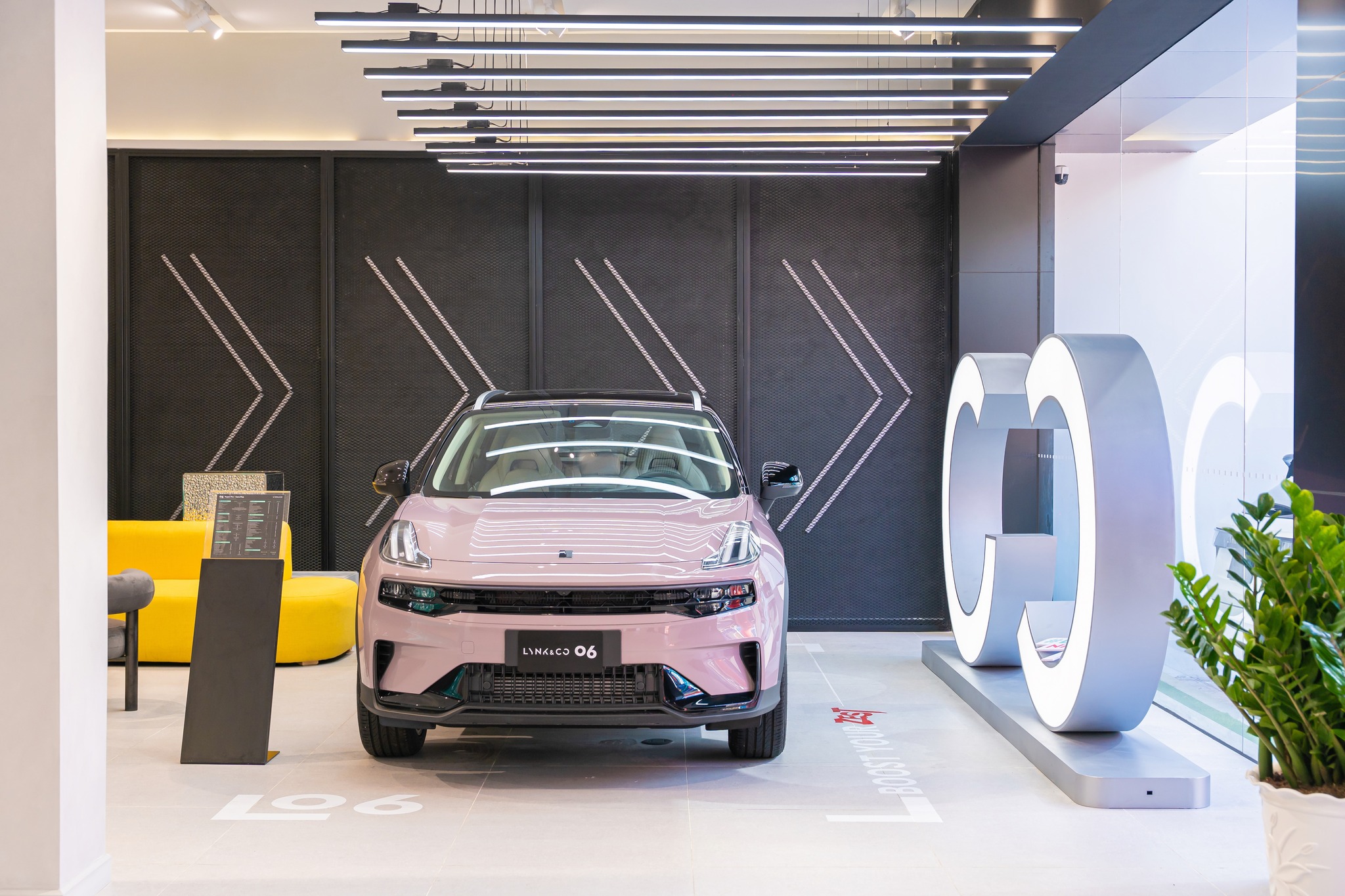 Global Media thiết kế và thi công hộp đèn Lynk & Co tại các khu vực chính như lối vào, khu trưng bày, quầy tiếp tân và khu chụp hình.