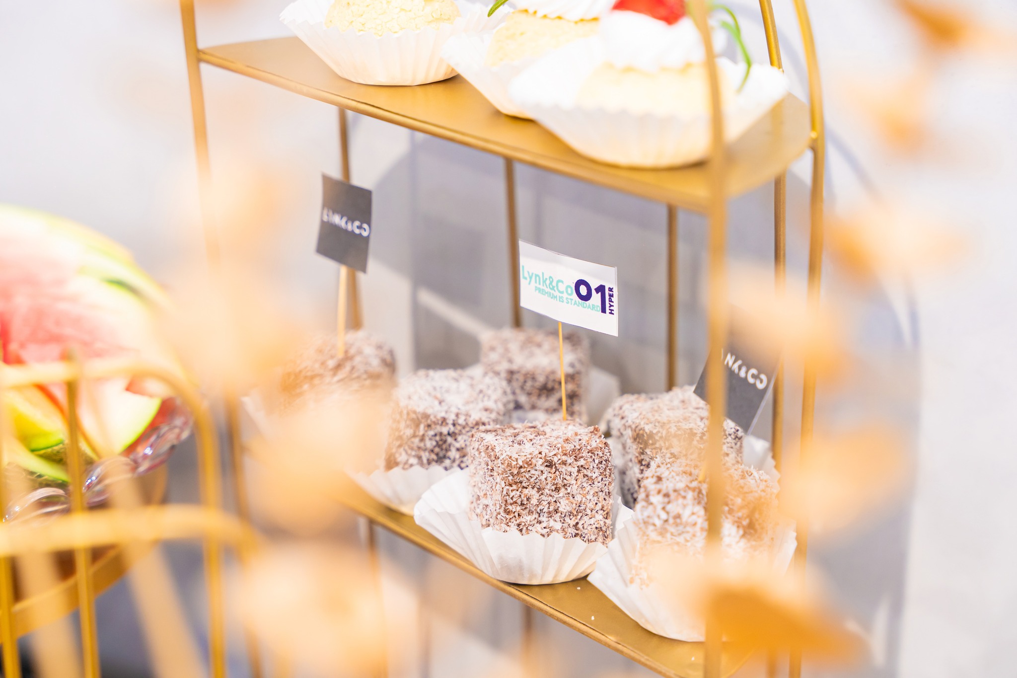 Các standee được in ấn sắc nét, bố trí ở những vị trí chiến lược như lối vào, khu vực check-in, khu trải nghiệm và bàn teabreak – đóng vai trò là điểm chạm thương hiệu tinh gọn, giúp khách mời dễ dàng nhận diện và ghi nhớ hình ảnh Lynk & Co.