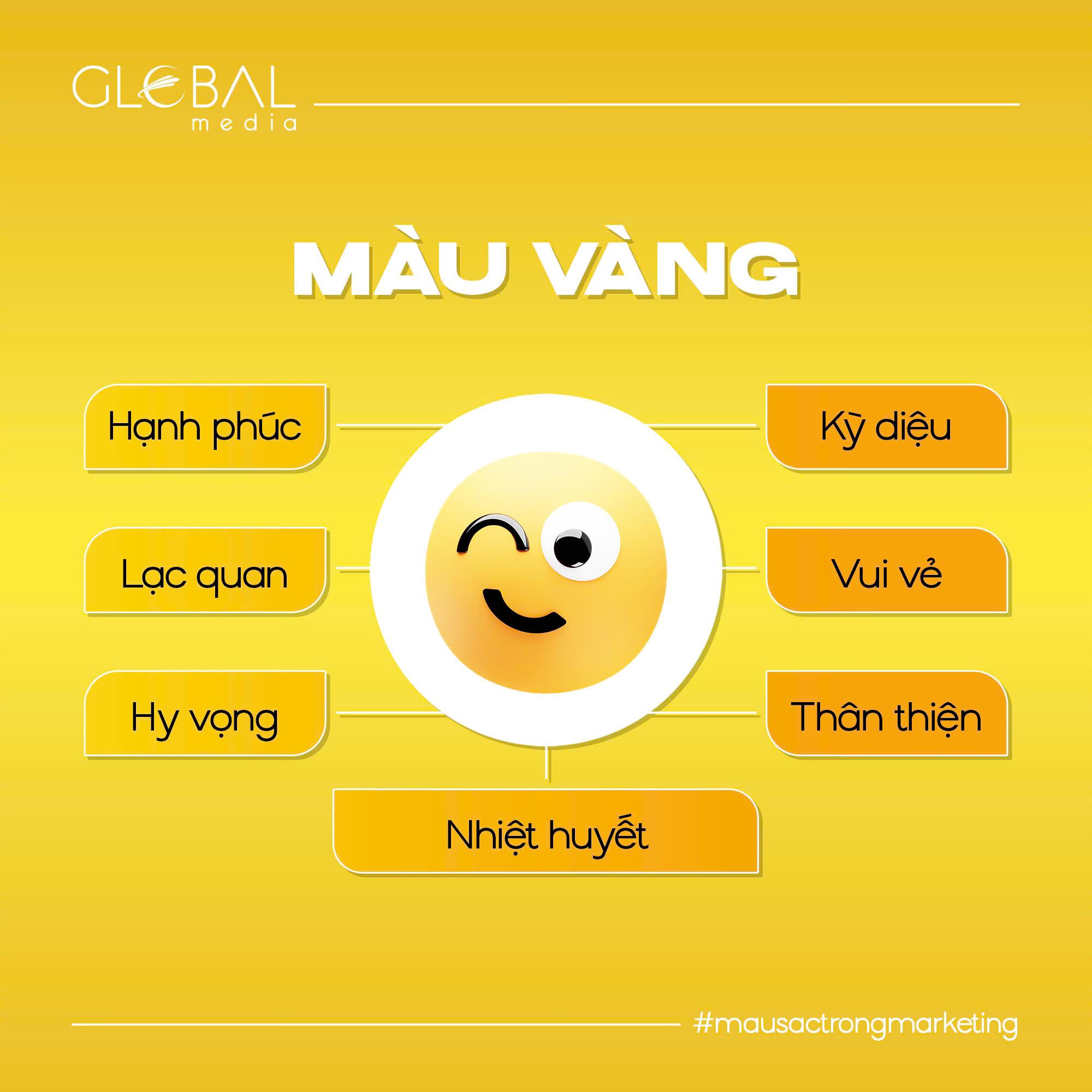 Màu vàng là ánh sáng của niềm vui. Sắc vàng gợi nhớ tới ấm áp, sự tươi sáng và tinh thần tích cực. Nó mang trong mình sự lạc quan, hy vọng và khả năng thu hút sự chú ý một cách nhẹ nhàng nhưng hiệu quả. Thương hiệu sử dụng màu vàng thường muốn truyền tải năng lượng vui vẻ, thân thiện và tràn đầy sự nhiệt huyết. Màu vàng cũng giúp tăng khả năng tập trung và giúp các thiết kế trở nên rực rỡ đầy cảm hứng.