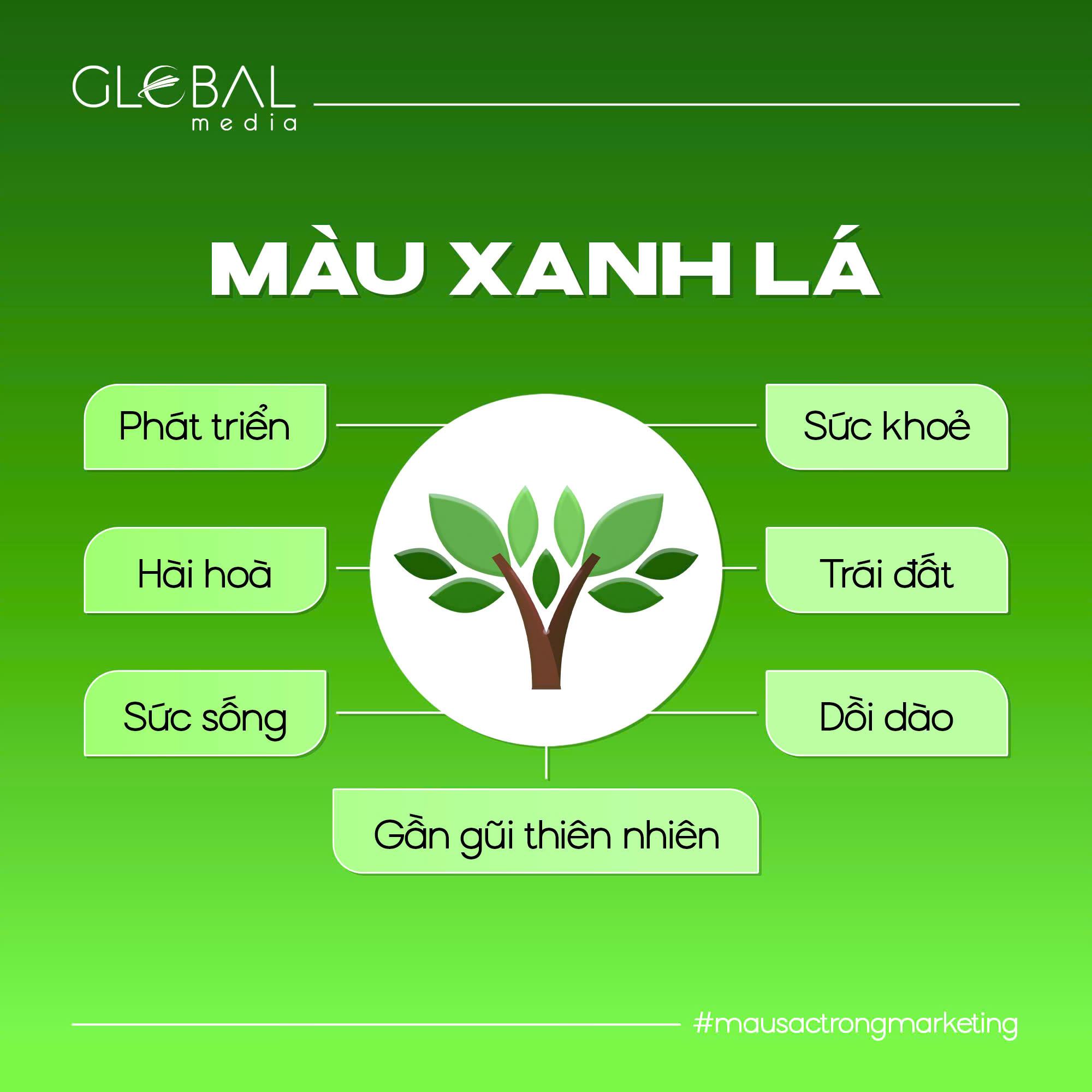 Xanh lá là màu sắc đại diện cho sự phát triển và tái sinh. Nó mang đến cảm giác hài hòa, dồi dào sinh lực và gắn kết con người với thiên nhiên. Những thương hiệu theo đuổi giá trị bền vững, sức khỏe hoặc những sản phẩm “xanh” thường ưu tiên gam màu này bởi khả năng truyền tải trạng thái an lành, khỏe mạnh và gần gũi. Xanh lá không chỉ nói về thiên nhiên; nó còn thể hiện tinh thần dồi dào, sự khởi đầu mới và những nguồn năng lượng tích cực.