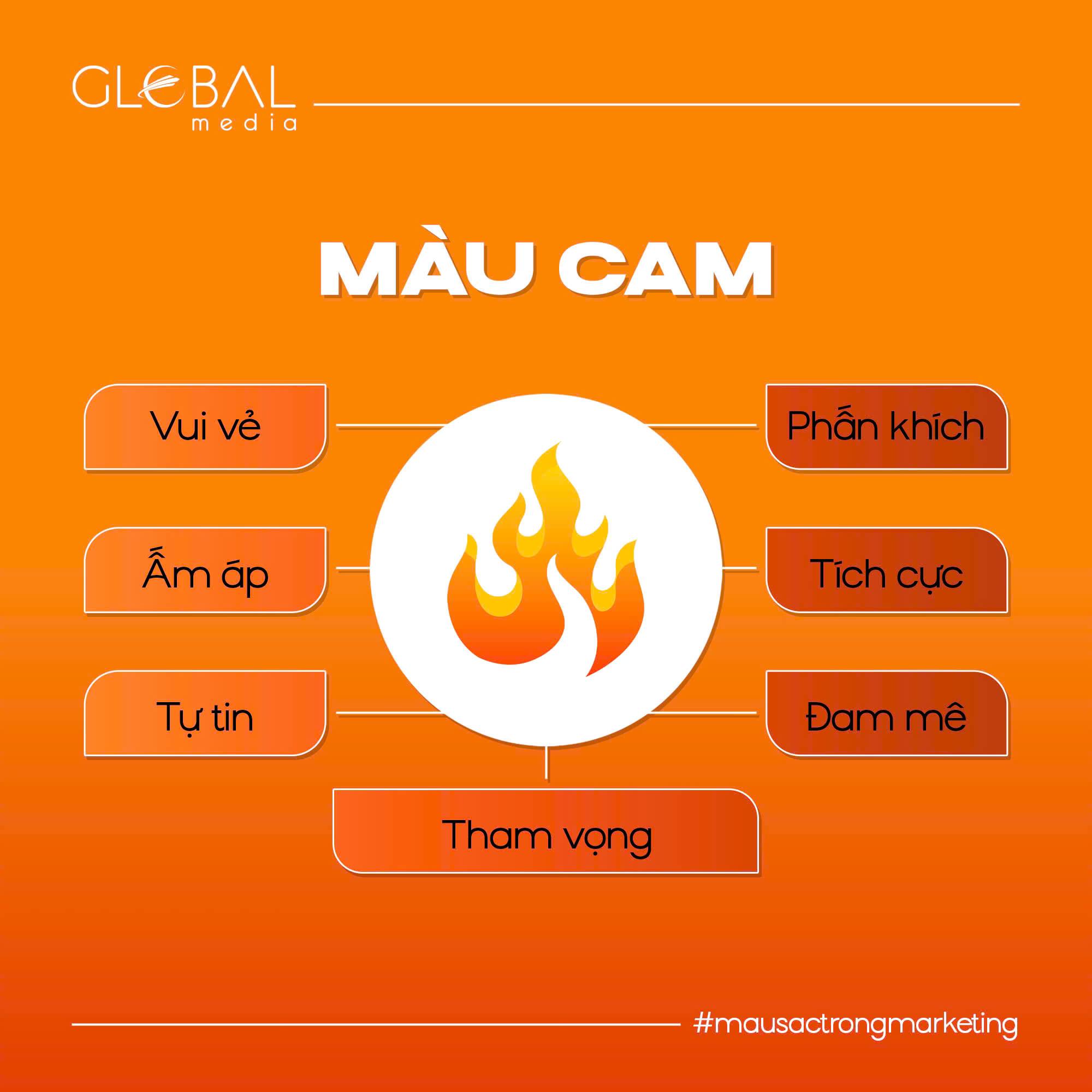 Nếu màu đỏ là sự bùng nổ, thì màu cam là nguồn năng lượng ấm áp và thân thiện hơn. Cam mang đến cảm giác vui vẻ, tự tin và đầy sức sống. Đây là gam màu tạo nên sự kết nối dễ dàng, phù hợp với các thương hiệu trẻ trung, năng động hoặc những chiến dịch muốn lan tỏa tinh thần lạc quan. Cam nổi bật nhưng không căng thẳng; sáng tạo nhưng vẫn mềm mại – là cầu nối hài hòa giữa tính nổi bật và cảm giác dễ chịu.