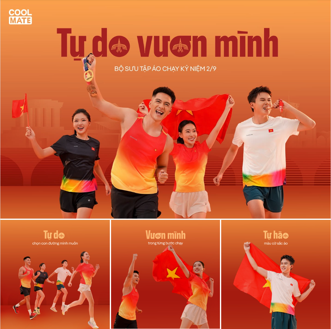 Coolmate giới thiệu bộ sưu tập áo thun “Tự do vươn mình”, lấy cảm hứng từ hòa bình, độc lập và sắc đỏ Quốc kỳ. Thương hiệu kết hợp: