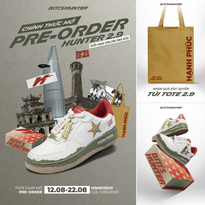 Nhằm tôn vinh Quốc kỳ Việt Nam, Biti’s ra mắt mẫu giày “Hunter 2.9 Limited” với sắc đỏ – vàng nổi bật, trung tâm là ngôi sao vàng biểu tượng. Điểm nhấn của chiến dịch là biến việc sở hữu đôi giày thành một “hành trình lễ hội”:
