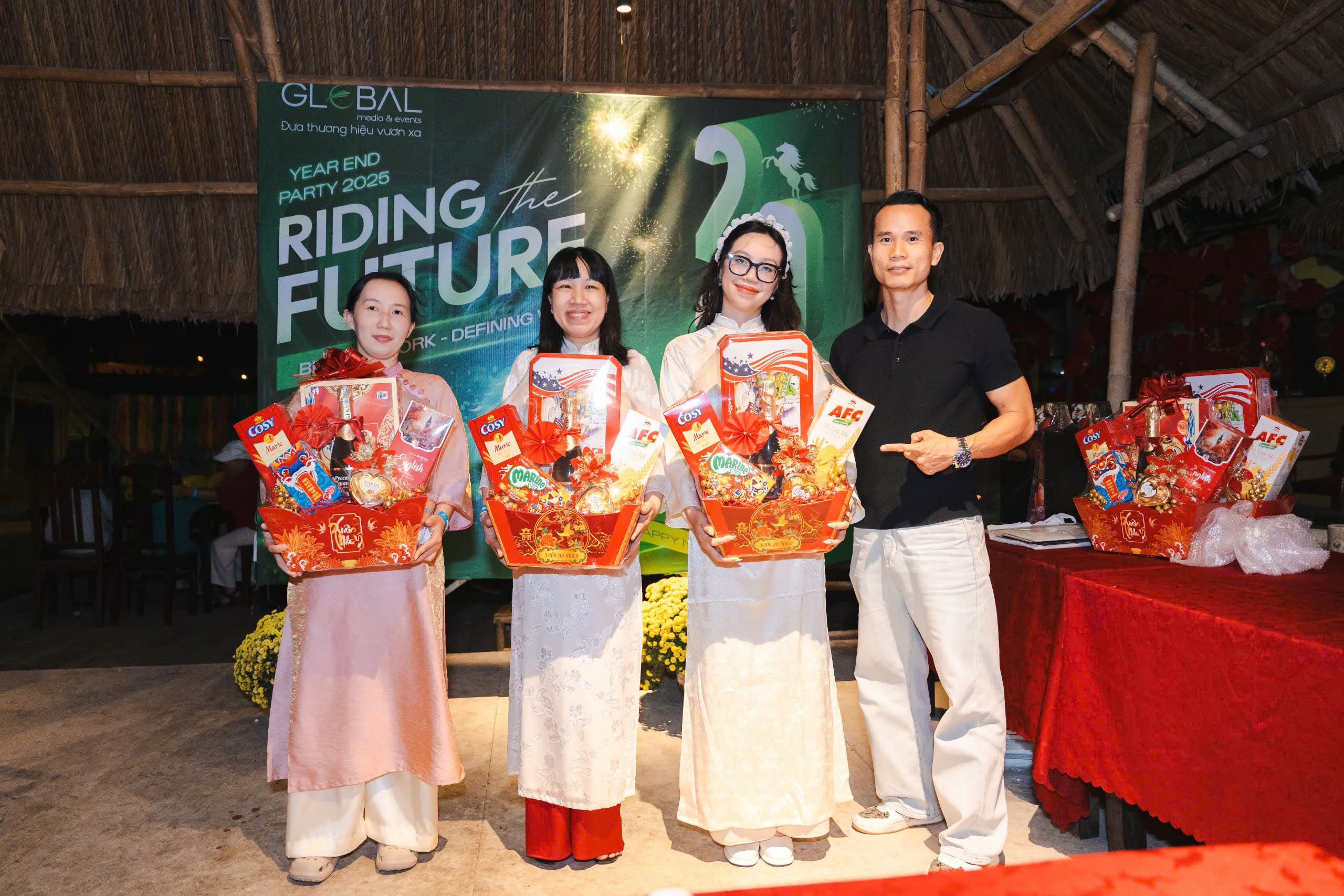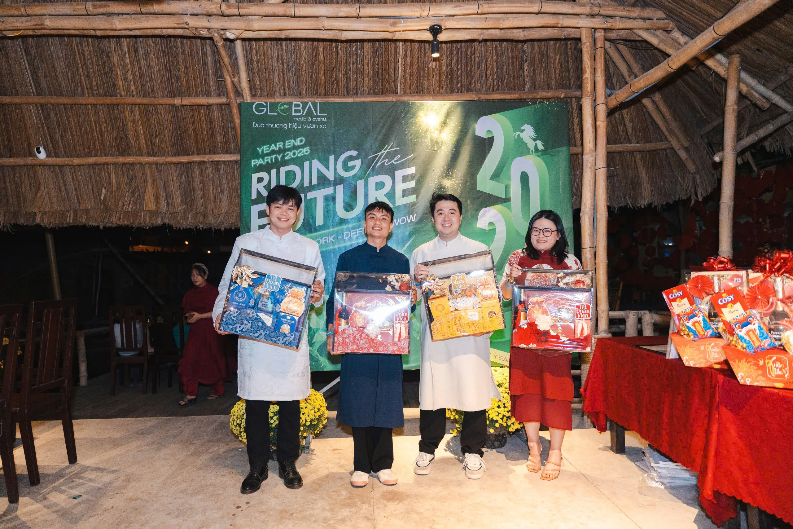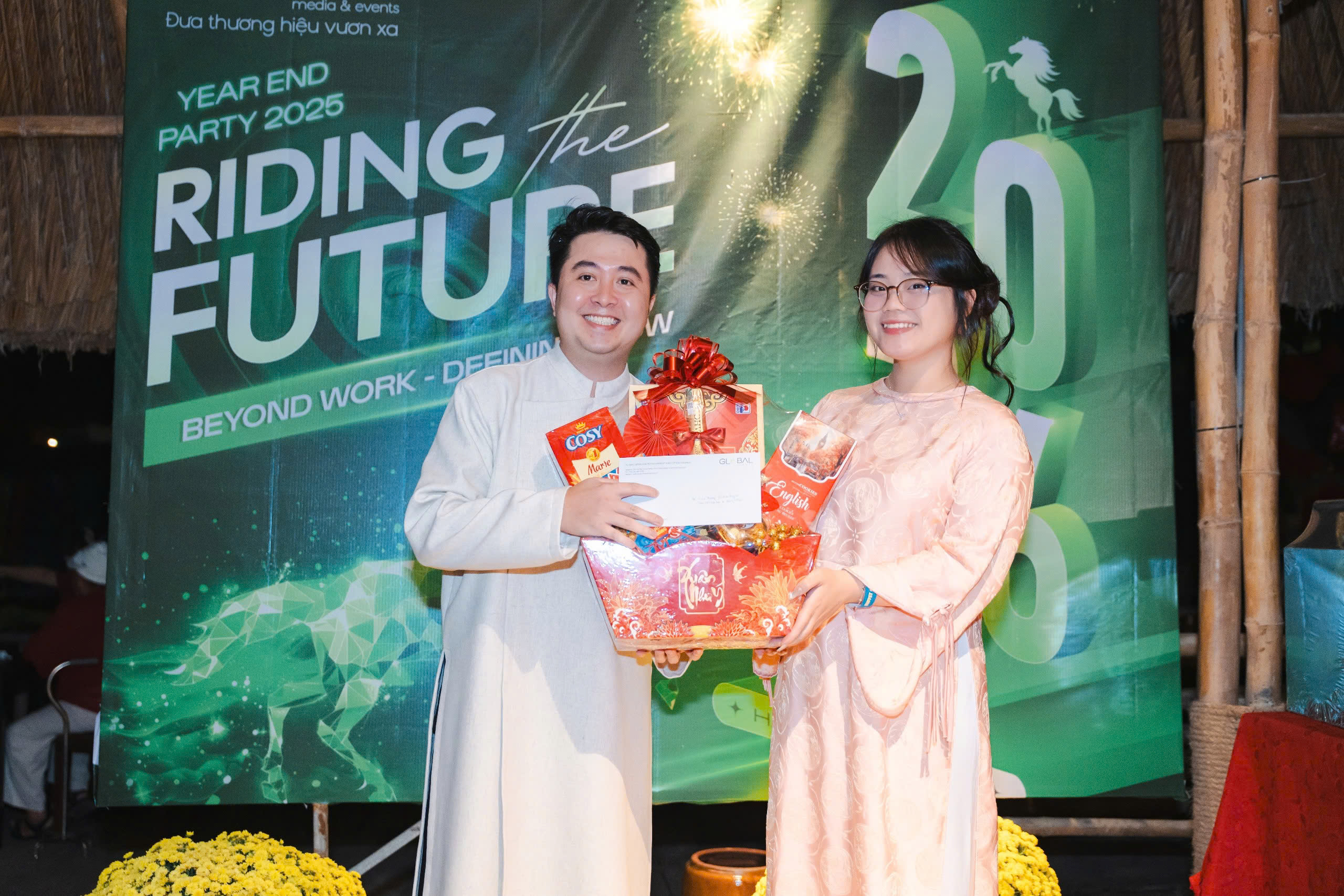 Year End Party 2025 của Global Media & Events không chỉ đơn thuần là một sự kiện tổng kết cuối năm. Đó là một điểm chạm cảm xúc, nơi mỗi thành viên được dừng lại giữa guồng quay bận rộn để nhìn lại hành trình đã đi qua. Trong không khí rực rỡ của áo dài, của tiếng cười và những ánh mắt chờ đợi, người ta nhận ra rằng điều làm nên ý nghĩa của buổi tối ấy không nằm ở sân khấu hay phần quà, mà nằm ở sự hiện diện của nhau. Sau một năm nhiều áp lực, khoảnh khắc được ngồi cạnh đồng nghiệp, được gọi tên, được lắng nghe và được ghi nhận trở nên trân quý hơn bao giờ hết.