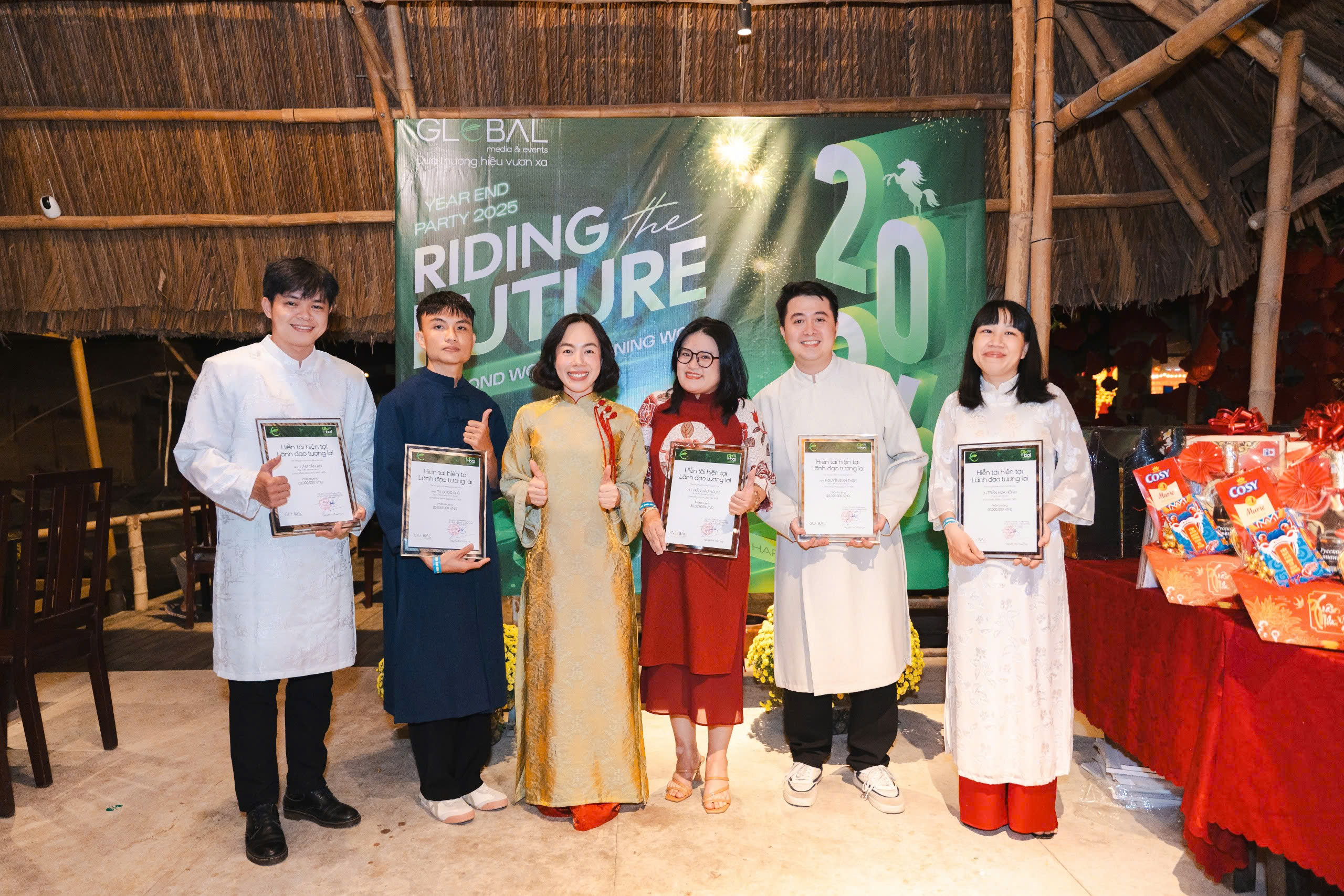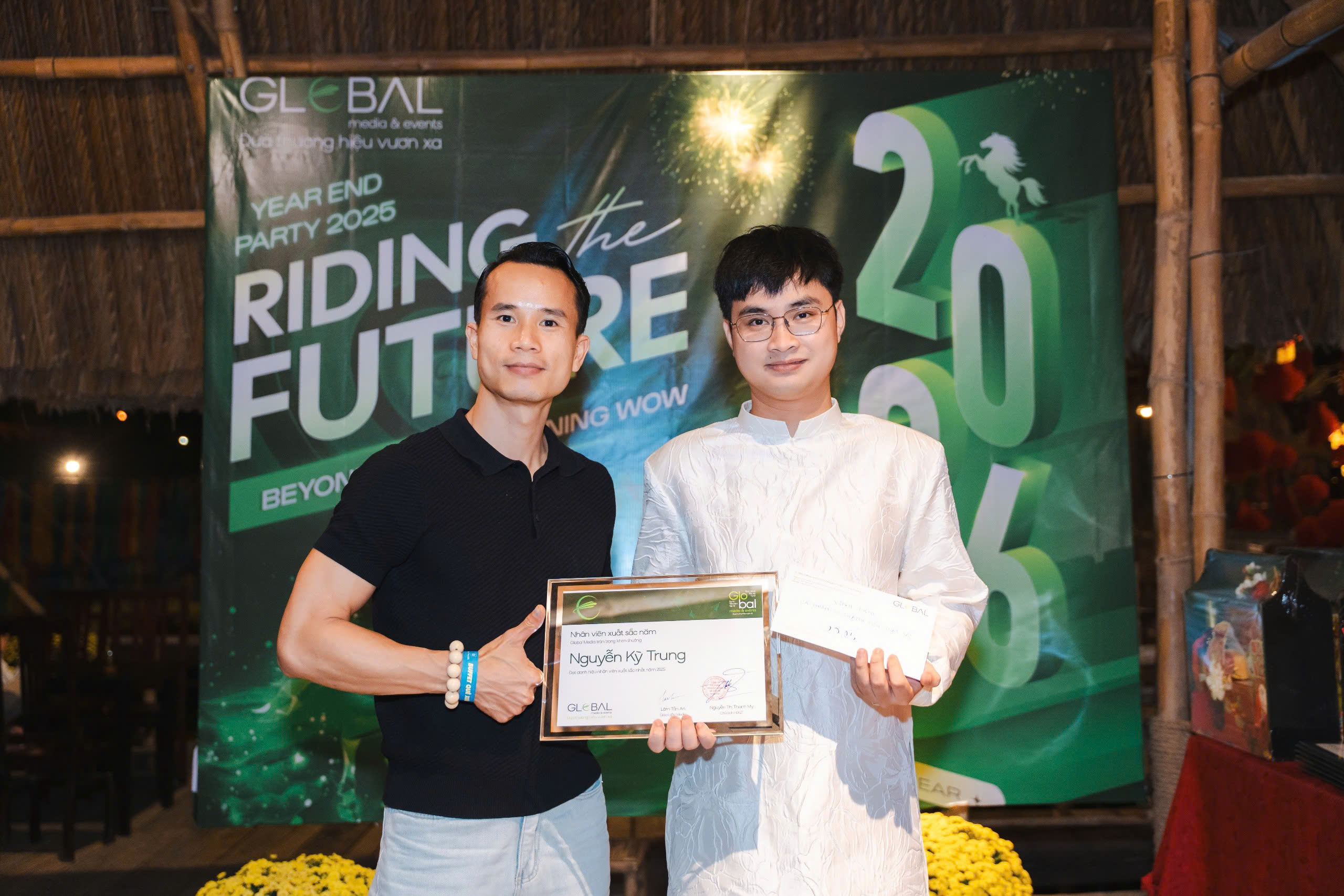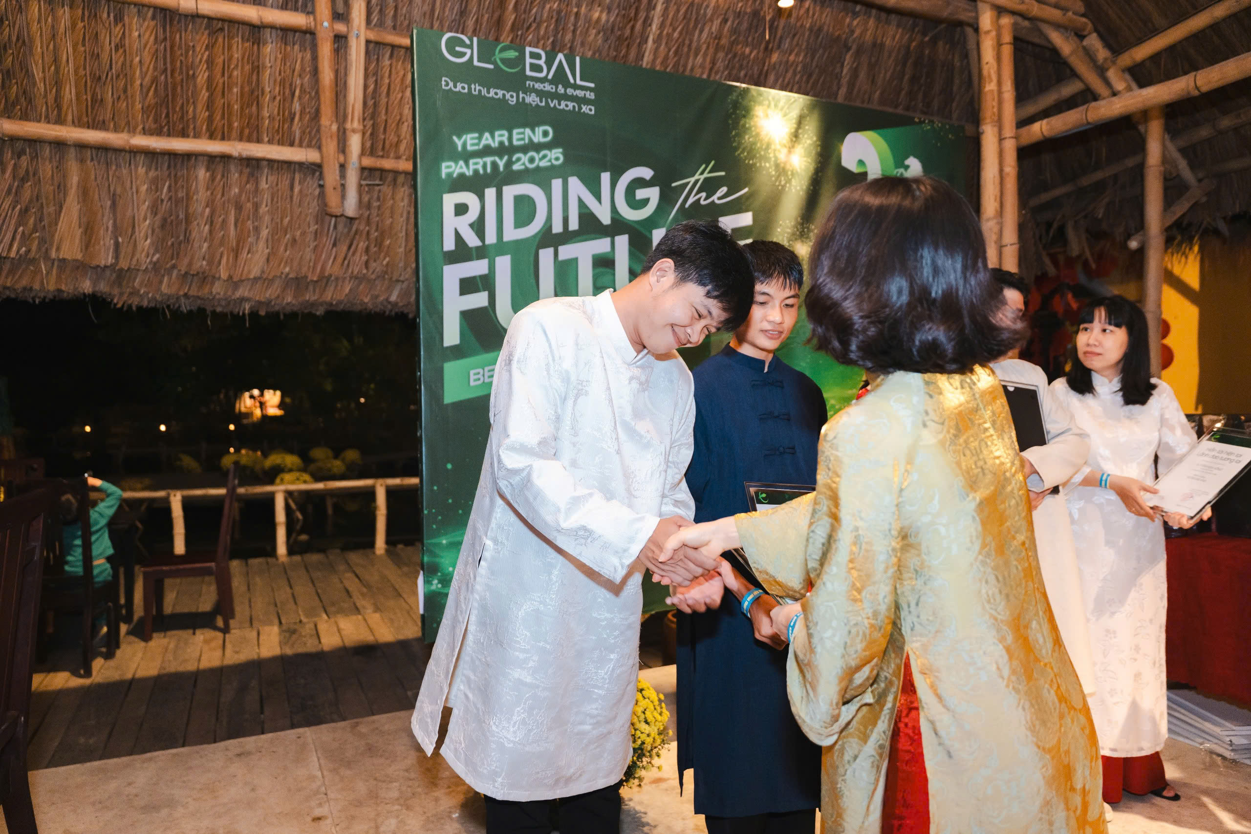Year End Party 2025 của Global Media & Events không chỉ đơn thuần là một sự kiện tổng kết cuối năm. Đó là một điểm chạm cảm xúc, nơi mỗi thành viên được dừng lại giữa guồng quay bận rộn để nhìn lại hành trình đã đi qua. Trong không khí rực rỡ của áo dài, của tiếng cười và những ánh mắt chờ đợi, người ta nhận ra rằng điều làm nên ý nghĩa của buổi tối ấy không nằm ở sân khấu hay phần quà, mà nằm ở sự hiện diện của nhau. Sau một năm nhiều áp lực, khoảnh khắc được ngồi cạnh đồng nghiệp, được gọi tên, được lắng nghe và được ghi nhận trở nên trân quý hơn bao giờ hết.