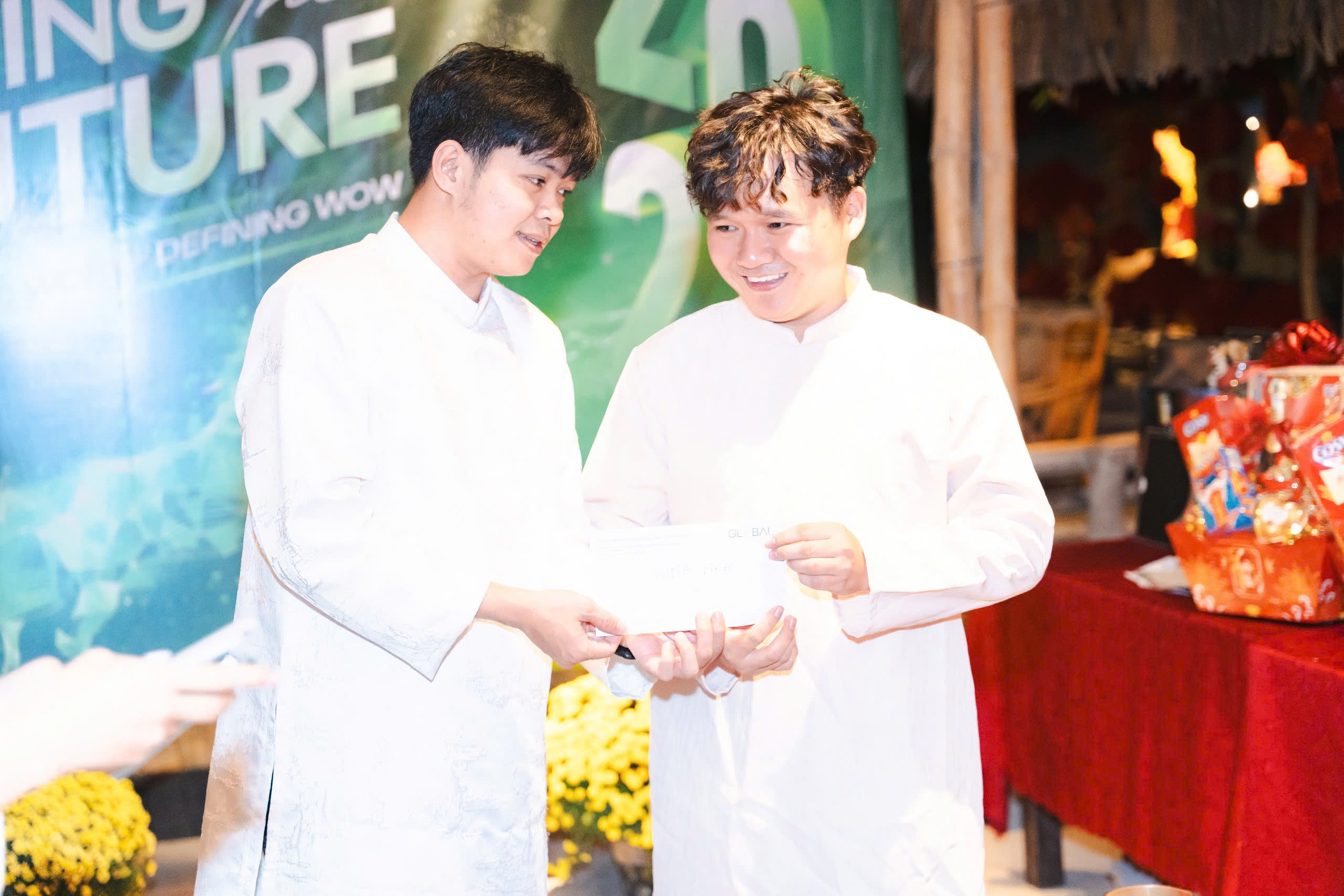 Phần trao quà Tết trong buổi tiệc mang một ý nghĩa rất riêng. Món quà có thể không lớn về vật chất, nhưng chứa đựng sự trân trọng. Sau một năm nhiều áp lực, điều quan trọng nhất là chúng ta đã đi cùng nhau đến cuối chặng đường. Mỗi phong bao được trao đi là một lời nhắn gửi rằng: bạn quan trọng, bạn được ghi nhận, và bạn là một phần của tập thể này. Có lẽ chính sự quan tâm ấy làm cho Global trở thành một môi trường ấm áp, nơi mọi người không chỉ làm việc mà còn chia sẻ và đồng hành.